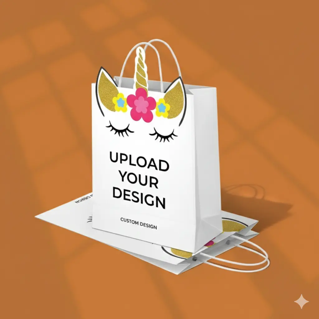 Make every gift extra special with this adorable unicorn-themed custom paper bag from Apni Packaging. Designed especially for kids’ events, birthday parties, and boutique gifting, this bag features a playful unicorn face with golden horn and floral details that instantly grab attention and create a joyful unboxing moment.