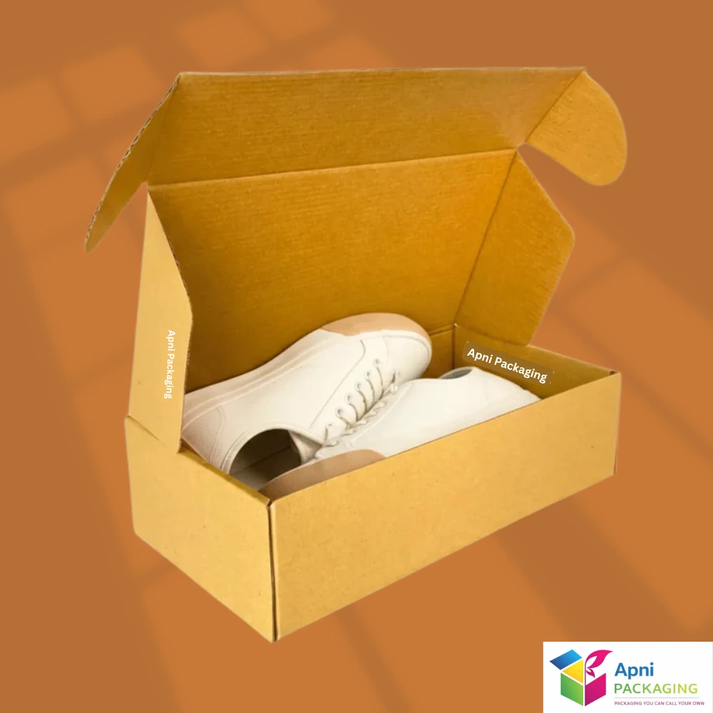 At Apni Packaging, we understand that shoes need safe, sturdy, and presentable packaging. This kraft corrugated shoe box is built with thick, high-quality cardboard that keeps footwear secure during shipping while maintaining a clean and premium appearance.